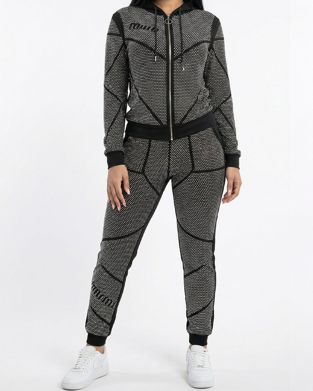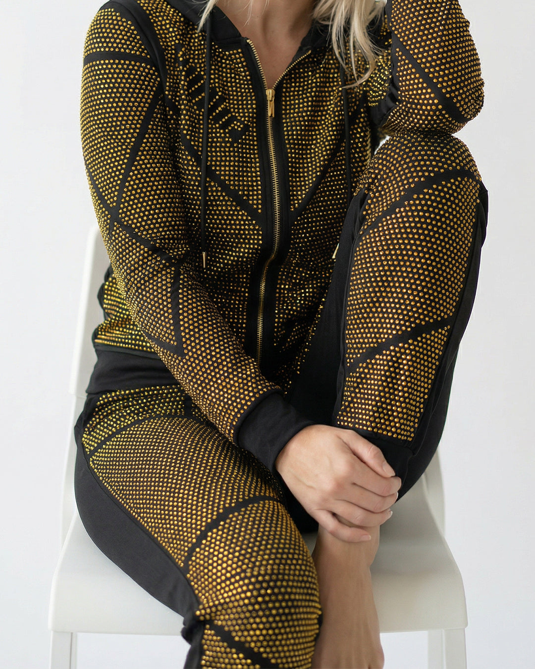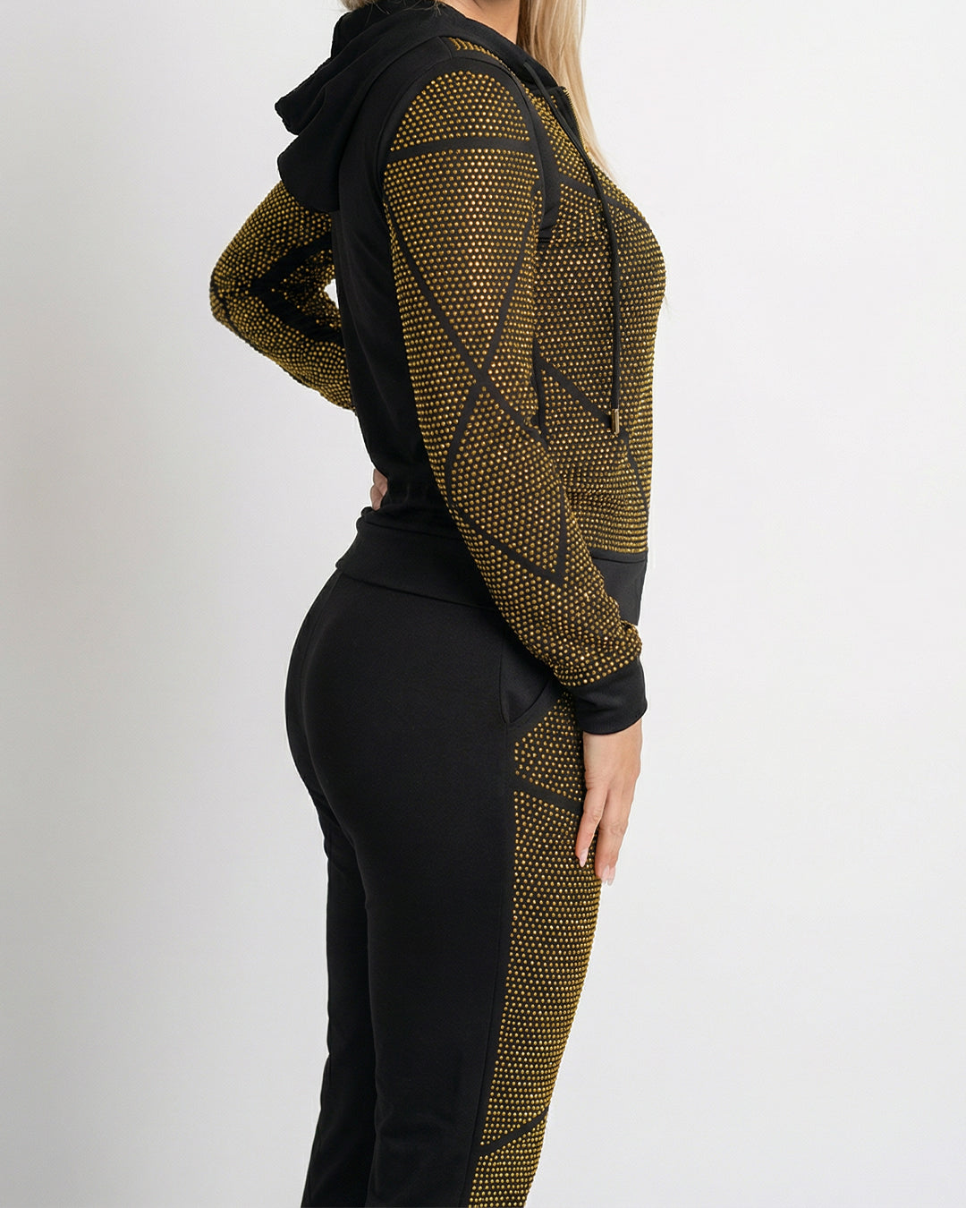 طقم بيجاما قطن فاخر – هودي وبنطلون مرصع بالكامل