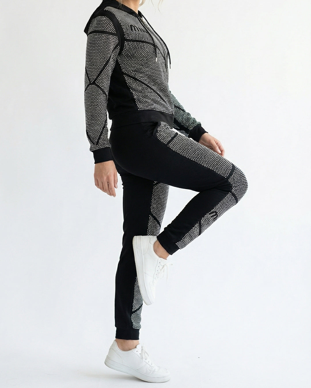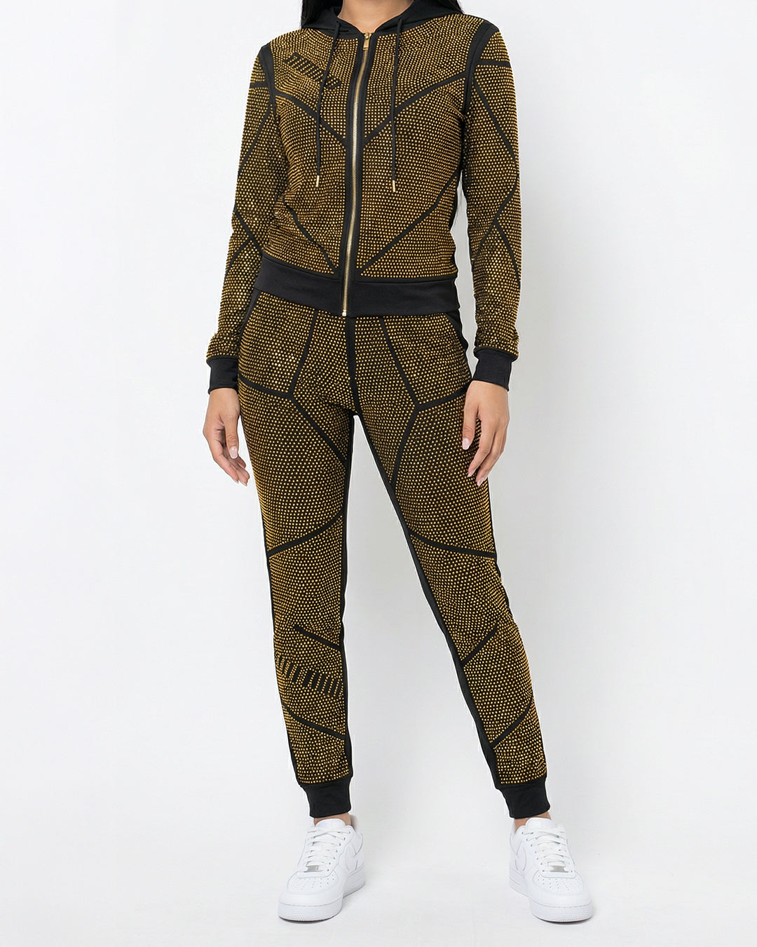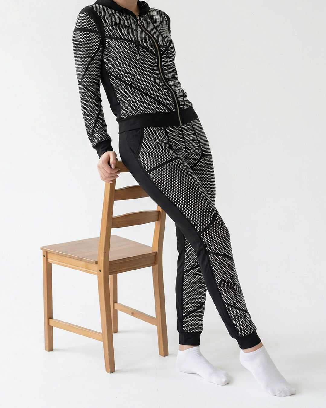 طقم بيجاما قطن فاخر – هودي وبنطلون مرصع بالكامل