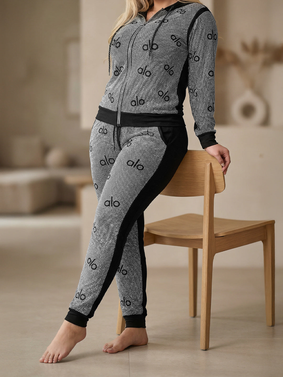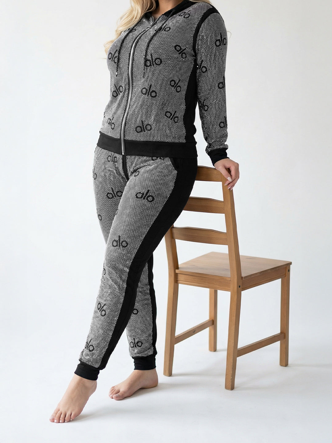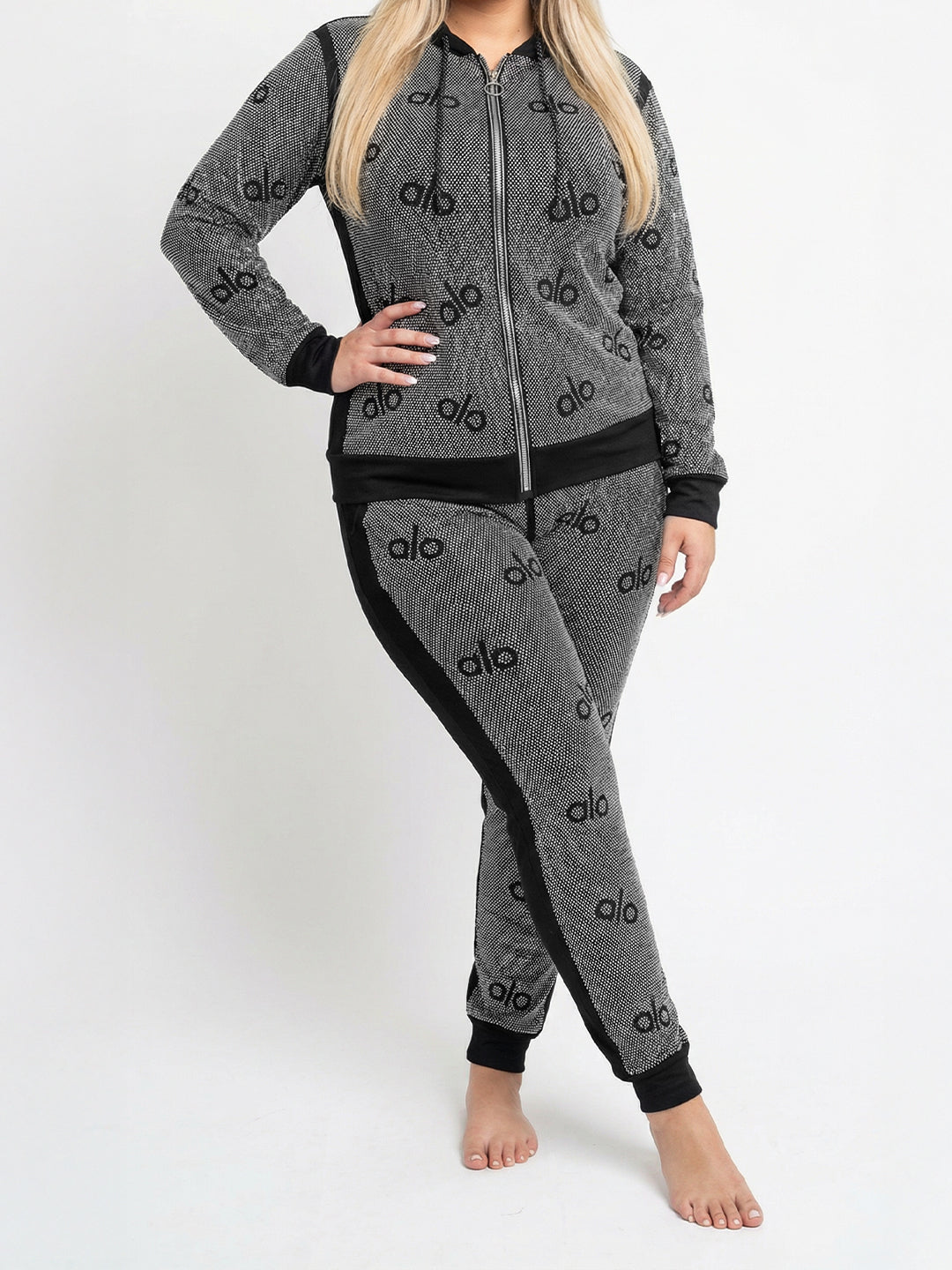 تصميم عالمي: نقشة الحروف المكررة "alo" تغطي الجاكيت والبنطلون.