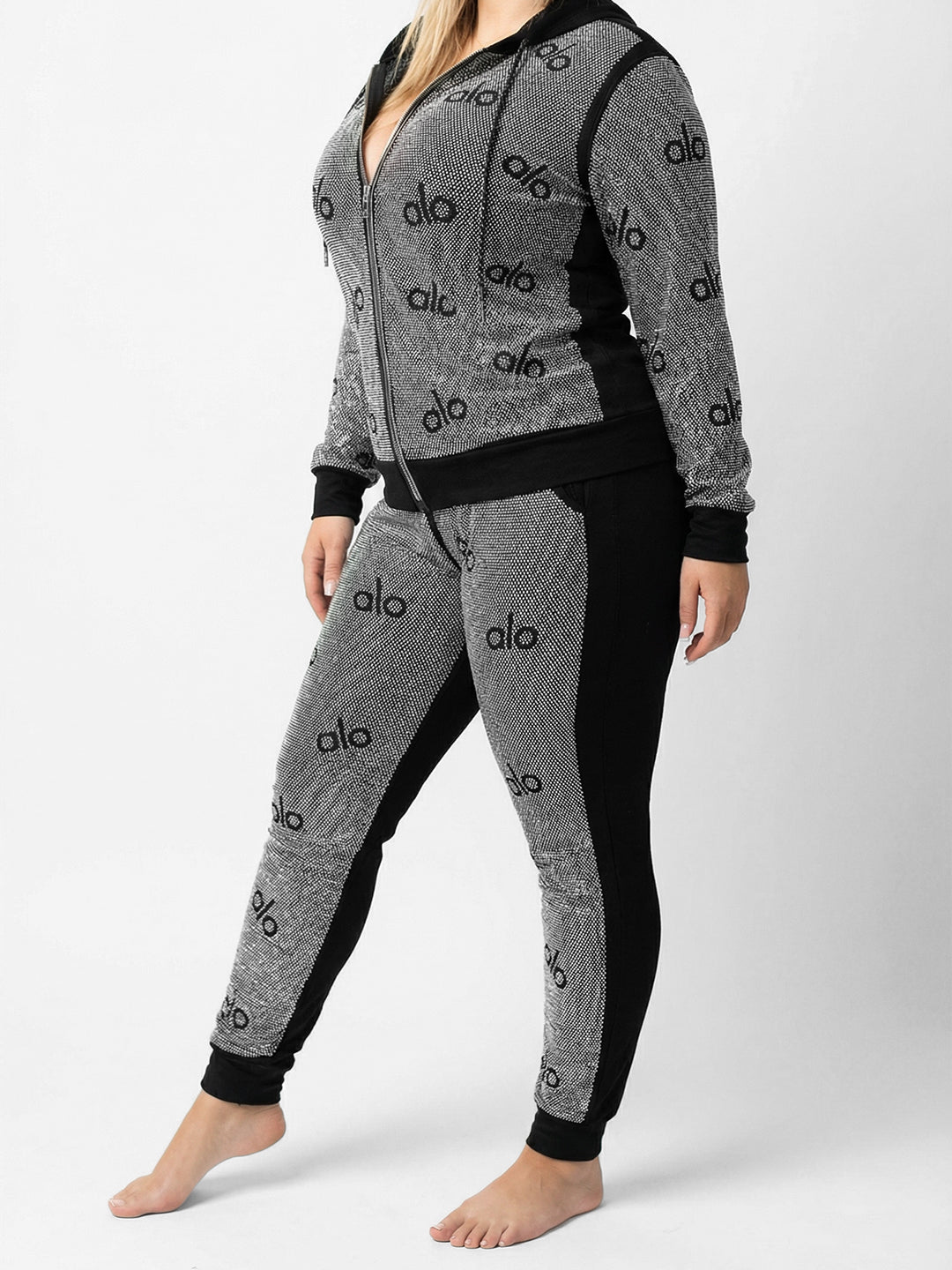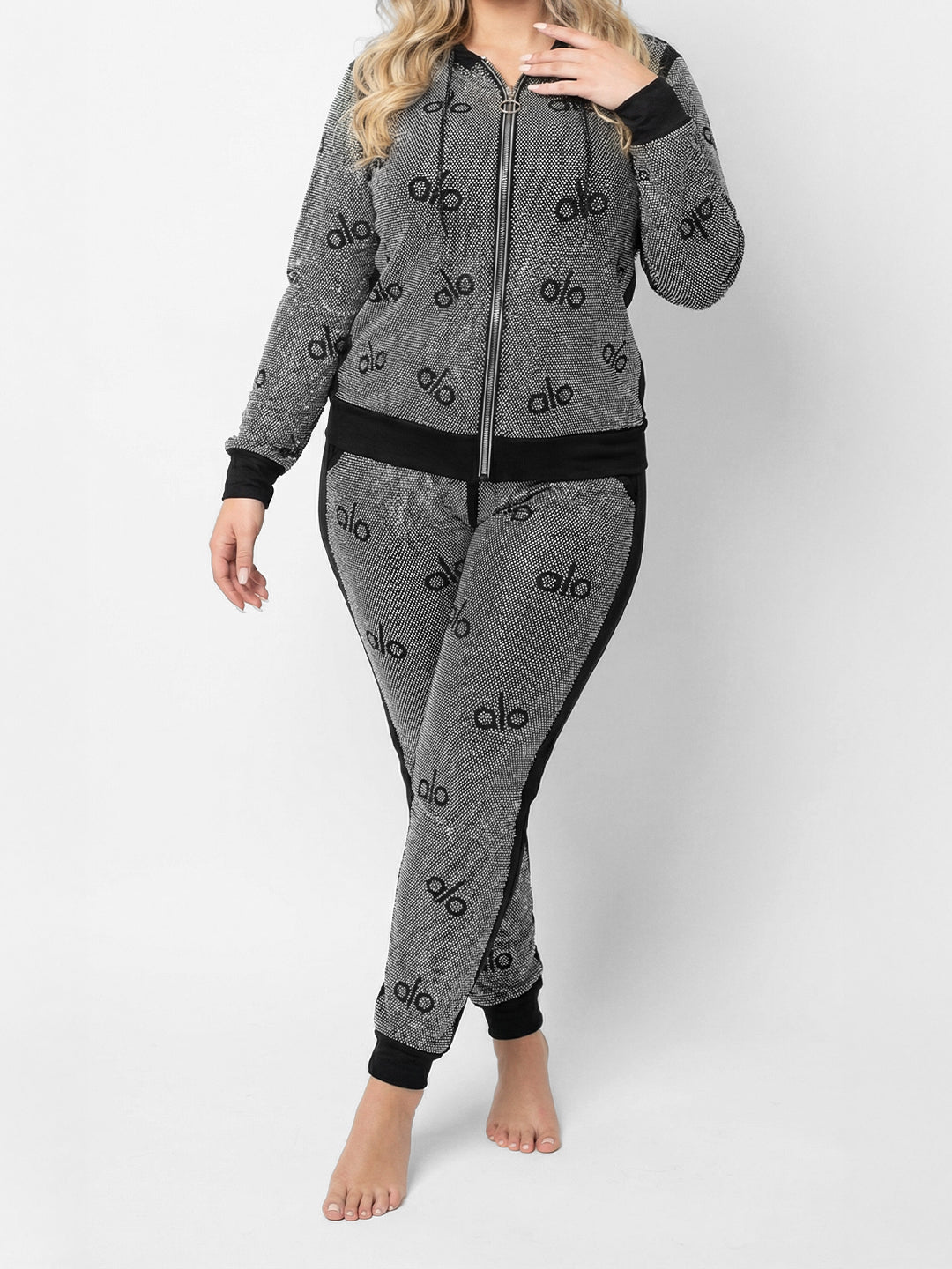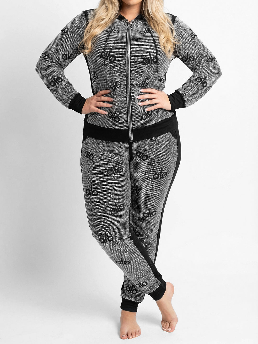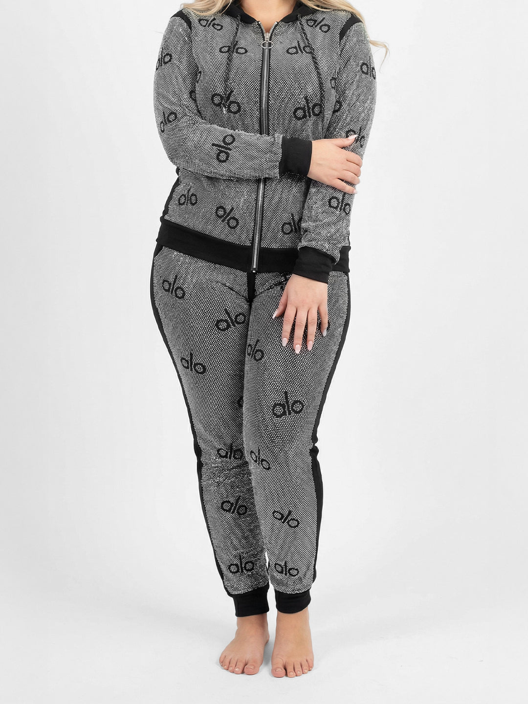 تصميم عالمي: نقشة الحروف المكررة "alo" تغطي الجاكيت والبنطلون.